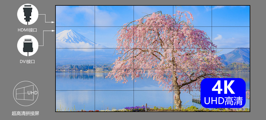 采用Songmin颂敏研发的液晶拼接控制技术,即可实现用户使用需求。接口齐全,支持CVBS、YPbPr、VGA、HDMI、DVI等信号输入;3D 数字化图像处理内核,能够真实还原现场,精确显示更多细节。